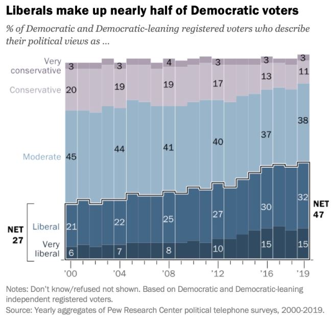 - Democrat does NOT = Liberal! Pew Research says this: āCombined, conservatives and moderates continue to make up about half of Democratic voters (51%).ā Meaning that they can be persuaded to vote Republican or sit it out entirely! Proof?: The Dems lost quite a few House seats this year). See the above quote about committed! So stop assuming a Democrat is going to support left wing ideas. They may listen, but they will need convincing to support.